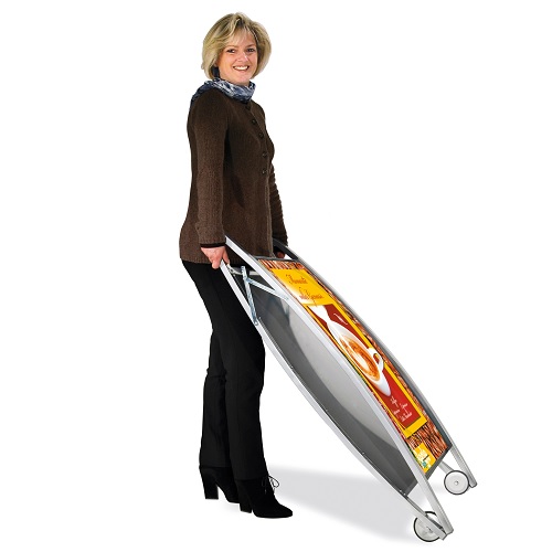 Plakatständer Boston, mobiler Kundenstopper für DIN A1 Format, doppelseitig, fahrbar auf Rollen, für den Innen- und Außenbereich.