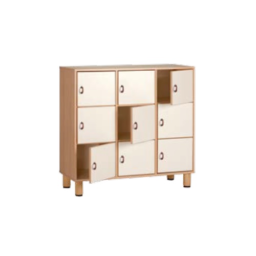 Das erste Element das Kinder finden, wenn sie im Klassenzimmer ankommen. Die Spinde sind mit 6 Abteilungen oder 9 Abteilungen, sowie mit Türen verfügbar.